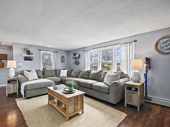 Fantastic 2-bedroom ranch nestled on a dead-end street awaits you! This cozy home offers comfortable living with a touch of modern convenience. The heart of the home lies in the updated eat-in kitchen, where you'll find a perfect blend of functionality and aesthetics. With its contemporary design and open floor plan, this kitchen is sure to inspire culinary creativity. Adjacent to the kitchen is the sun-drenched living room, featuring a wood burning fireplace. The master bedroom has soaring cathedral ceilings, 2 closets & direct access to the full bath! With the upcoming summer months, envision yourself soaking up the rays of sunshine or hosting BBQs on the stone patio in the spacious back yard! A storage shed provides convenient space for all your gardening tools and outdoor equipment. Your new home has plenty of off-street parking and an attached garage for all of your parking needs! Welcome Home!
