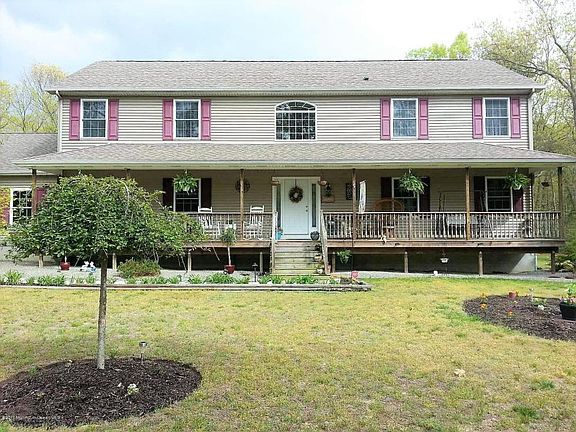 Gorgeous colonial nestled on 5 whole acres, in quiet Plumsted Township. Sip your coffee while enjoying the view from the comfort of the porch. Bright and airy foyer gives a warm welcome. Gleaming hardwood floors throughout most of first floor. Plush carpet gives family room a cozy feel. Warm up in the living room by the gas fireplace. Eat in kitchen is drenched in natural light. Beautiful kitchen comes with all stainless steel appliances and granite counter tops! Butler's pantry/laundry room is equipped with laundry tub for ultimate convenience. Open floor plan gives this home an excellent flow. Large dining room perfect for any entertaining! Impressive staircase leads to second floor where you can appreciate all the views of nature. Huge master bedroom through the french doors comes with