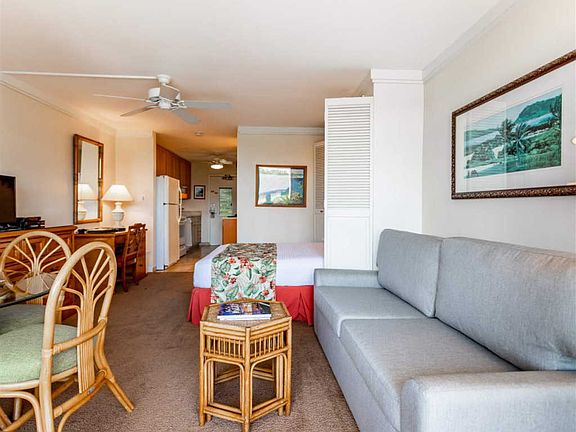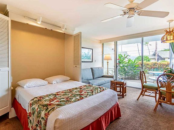 A rare opportunity to own at Napili Sunset just across the street from the beautiful white sandy beach of Napili Bay, which is arguably one of the best beaches on Maui! This ground floor studio unit is well maintained and in the on-site rental program. There is tiled flooring throughout with a walk-in tiled shower. Plush carpet is located in the living area as well as a ceiling fan and Murphy bed (fold down bed). This unit is turnkey ready and has an on-site laundry area. Enjoy your private lanai that leads to the pool, bbq grills, and lounge chairs for your convenience. Directly across the street is Napili Bay, where you can enjoy the spectacular views of the neighboring islands and crystal clear waters. Napili Sunset is in close proximity to world class golfing, tennis, fine dining, and so much more. Napili Sunset is listed as the Worldâs Best Beachfront Hotel by Frommerâs Travel Guide. Call your favorite realtor TODAY to schedule a showing! **Board is in the process of installing all new windows and doors. When this is done they plan to install Air Conditioning. In addition to that, the Board is repainting the building to get rid of the yellow tint, redoing patios and hardscape, redoing drainage to hide downspouts, and getting rid of a lot of old plants. **The current Board has also formed an interior design committee which is working on a plan to upgrade the interior of 6 units every year over the next 7 years (42 total condos).