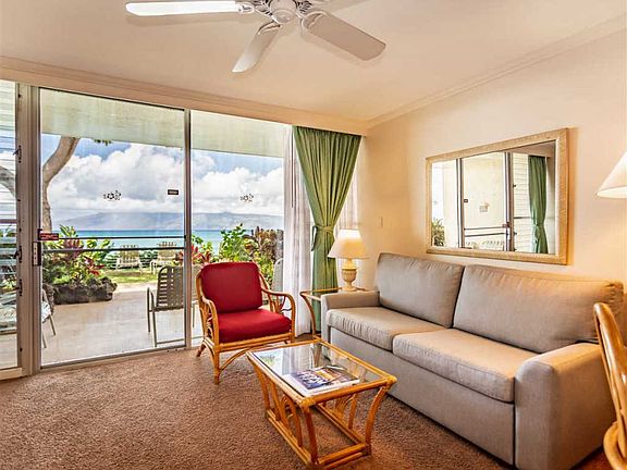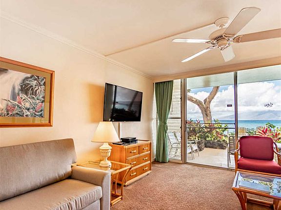 A rare opportunity to own at Napili Sunset just steps away from the beautiful white sandy beach of Napili Bay, which is arguably one of the best beaches on Maui! This ground floor 1 bed 1 bath unit is well maintained and in the on-site rental program. There is tiled flooring throughout with a walk-in tiled shower. Plush carpet is located in the living area and bedroom as well as ceiling fans. This unit is turnkey ready and has an on-site laundry area. Enjoy the spectacular views of the bay and neighboring islands on your private oceanfront lanai. There is lots of lounge chairs to enjoy the sun and bbq grills for some outdoor cooking. The pool is located near the front desk office, across the street and is also equipped with bbq grills. Napili Sunset is in close proximity to world class golfing, tennis, fine dining, and so much more. Napili Sunset is listed as the Worldâs Best Beachfront Hotel by Frommerâs Travel Guide. Call your favorite realtor TODAY to schedule a showing!