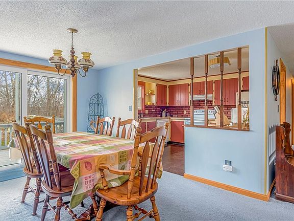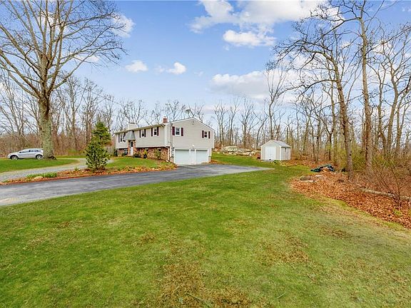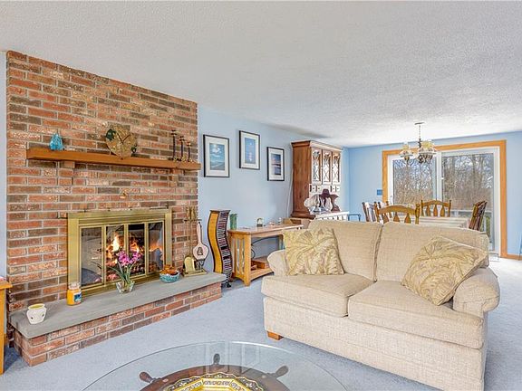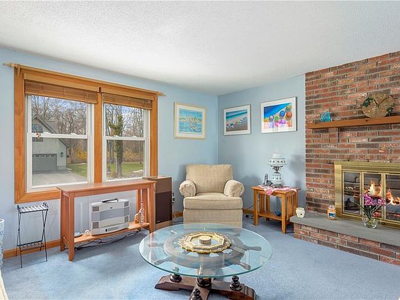 Raised ranch with a bright open floor plan featuring a beautiful brick fireplace and sliding glass doors to the pool area. Downstairs is a finished family room with additional brick fireplace, and two car garage underneath. Built in 1978 this home can use some updating but it has great bones and has been well maintained. The yard features a built-in gunite swimming pool surrounded by both patio and wood decks. The private pool area is fenced and features a screened porch, all ready for summer pool parties! Outdoor room attached to the house contains pool pump equipment in addition to a seasonal 1/2 bath and sink. No wet bathing suits in the house! Furnace burns both wood and oil; if wood runs out system automatically switches to oil. Maintenance free outside with aluminum siding, vinyl windows and a newer roof. Landscaping contains some beautiful ornamental plantings and a sprinkler system.