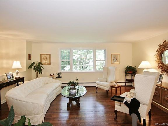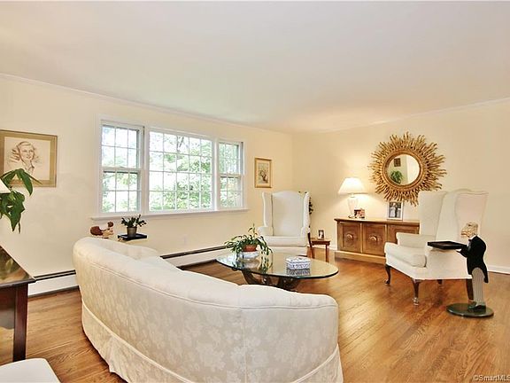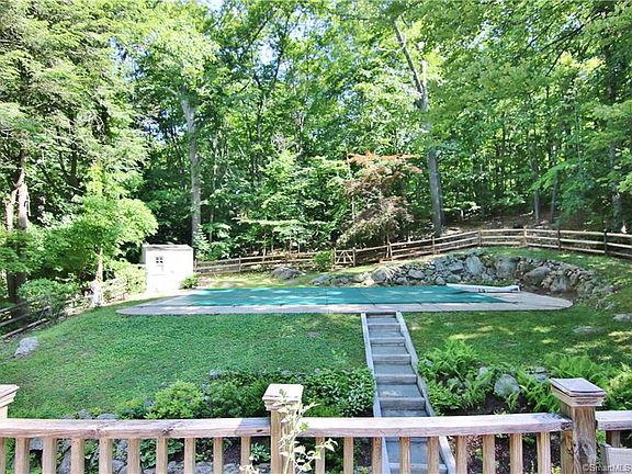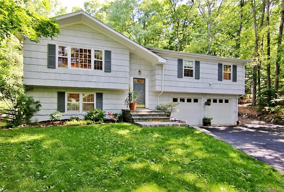 This "tucked away treasure" has all you could want in a country home ... and it's move-in ready It's very privately set on a tranquil landscaped acre mature trees, lg, inviting, well-crafted deck natural gas line for BBQ - AND there's a sparkling in-ground pool brand new lining & diving board, new heater & 2-yr old pump+filter. That level of care reflects everything you'll be delighted to find inside as well, where new EIK, baths & Family rm await Stylish EIK, just completed in 2016, is filled all of today's favored features - granite counter tops+matching designer table, stainless applcs incl French door refrigerator, tile backsplash, white custom cabinetry & more (feature sheet tells all while EIK sliders open to the deck & picturesque serenity at back. The entire main flr has gleaming hdwd flrs; sunny LR & spacious DR both have crown molding too. New hall bathrm is beautifully finished beadboard, granite topped vanity & lovely tile. All 3-bright & sunny BRs have hdwd flrs - Master has 2-closets, one's walk-in, & beautifully redone bathrm shower that's just been completed Downstairs, there's a half bath that was redecorated in 2015 + spacious Family rm transformed in 2016. It has a fpl & sliders out & features wall mounted TV designed concealed wiring/cable box. In fact, a total of 3-TVs will remain for you Just mins from shops/restaurants, schools & golf, 1-mile to Merritt Pkwy & walking distance to Museum & Nature Center, yet a special world of its own