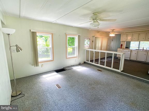 Purchase subject to Mobile home association approval. $45.00 application fee. Monthly ground rent $555.00 per month. Many (8) newer windows replaced approximately one year ago. Great location at the very back of the park with deer, bunnies etc. Overlooks a field of green. The covered screened porch also has window inserts to extend its use to 3 seasons and offers a propane fireplace. Park owner pays real estate taxes. Property being sold in as is condition. Buyer is responsible for the installation of tie downs.