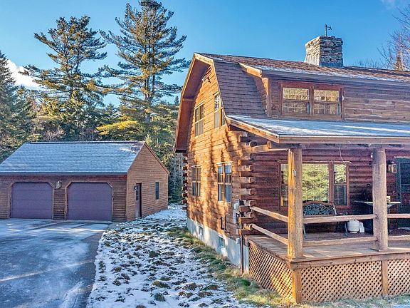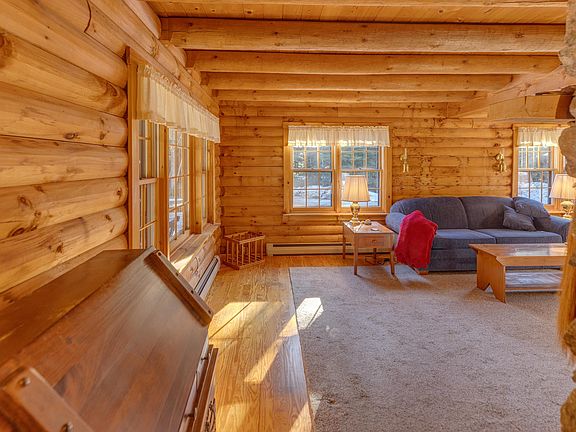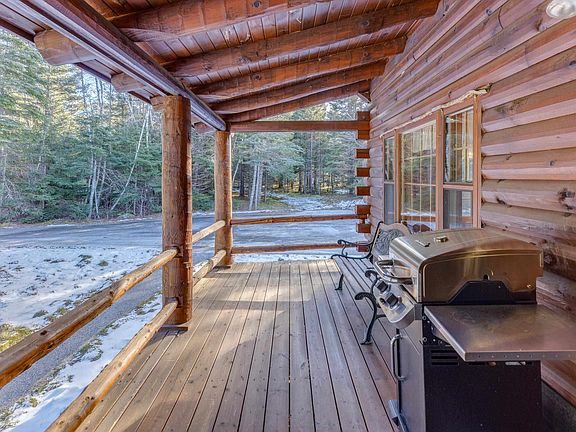Has the time finally arrived to realize your dream of a Log Home in the Mountains? Well kept, gambrel log home tucked away in the pines on 2.45 +- acres awaits. Quiet and serene setting in an exclusively log home community. Paved drive, town maintained road, full house generator & town water allow for ease of living. Covered entry porch waiting for you to 'kick back' & enjoy. Enter to appreciate the beautiful log beams overhead highlighting the 'open concept' kitchen /dining area. Ample windows allow for natural light to stream into the living room which runs the width of the house. Highlight is the phenomenal, rock fireplace as a centerpiece. Imagine gathering round the fire (propane fueled) after a day of being in the mountains - exploring and enjoying the out of doors. Pure bliss. Two ‘front to back’ bedrooms balance out the upper level (along with the ¾ shared bath). Both light filled rooms boast the same tall, log beamed ceilings. Finished room in the full basement awaits your imagination (with more space to ‘finish’ off if your choose). Detached two car garage has great space too. Fantastic mountain 'get away'. Access to many trailheads and local attractions: Bretton Woods Ski Area; Omni Mount Washington Hotel, Resort & Spa; Cog Railway; AMC Highlands Center; Cannon Mountain, Santa's Village. Feel like you are way out in the woods but know that you are only 15 minutes to Bretton Woods & 20 min to Cannon. Come and enjoy the tranquility. Septic approval is for 3 bedroom