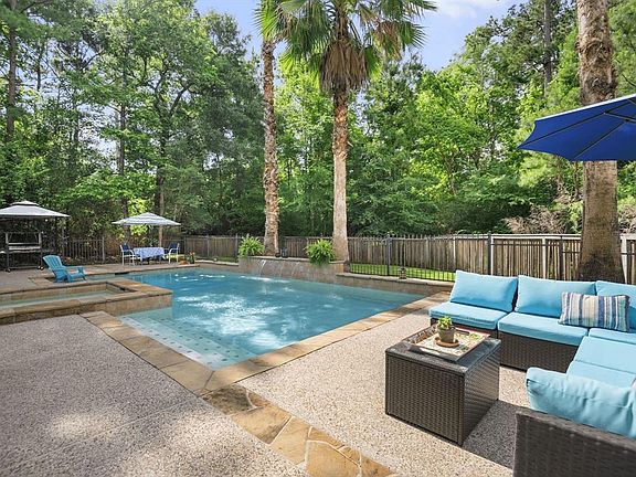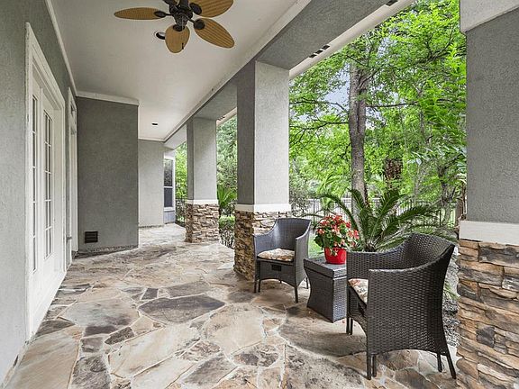 Beautiful curb appeal w/warm color tones, stone, stucco , columns & wrap around porch! Completely private, backing to greenbelt & w/huge yard. Step inside & be impressed w/2 story foyer & dining room w/French doors leading to wrap around porch. Modern colors throughout! Open, easy floor plan, great for entertaining! Family room has stone fireplace flanked w/built-ins & beamed cathedral ceiling. Kitchen is spacious & open to the family. New Kitchen Aid appliances, granite & nice sit up bar! Wood tile floors are easy to maintain! Master & study are tucked away. Master suite has windows overlooking the pool, backyard & greenbelt. Brand new master shower! Game room is mid-level with door & perfect for noise control! Baths all have new tile floors. Bedrooms are nice size. Soak up the sun on the tanning ledge in the large pool, while enjoying the waterfall w/just the forest behind you! The seller has had weddings, graduations, birthdays in this backyard which is fabulous! True 3 car garage.