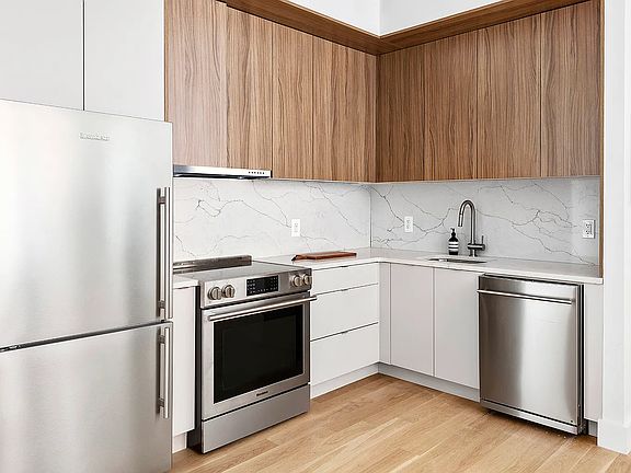 Welcome to 46 Kossuth Place, the premier new development condominium in Bushwick, Brooklyn. Designed by Arc Architecture + Design Studios, the boutique building offers 10 unique units in 1 bedroom, 2 bedroom and duplex layouts. All residences feature luxuriously crafted spaces that exemplify modern living. Soaring 10.5 foot ceilings and double-pane Salamander windows combine to create light and airy interiors. Units showcase a top of the line appliance package, stacked washer/dryer, and hardwood white oak floors. Other architectural components include generous, accommodating bedrooms, ample closets and open concept kitchens. Each unit has its own private outdoor space for relaxing or entertaining family and friends. Common areas include a fully furnished lounge and an expansive rooftop deck with sweeping city skyline views.