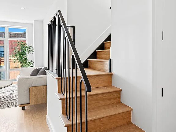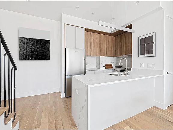 Ready for Immediate Occupancy! Welcome to 46 Kossuth Place, the premier new development condominium in Bushwick, Brooklyn. Designed by Arc Architecture + Design Studios, the boutique building offers 10 unique units in 1 bedroom, 2 bedroom and duplex layouts. All residences feature luxuriously crafted spaces that exemplify modern living. Soaring 10.5 foot ceilings and double-pane Salamander windows combine to create light and airy interiors. Units showcase a top of the line appliance package, stacked washer/dryer, and hardwood white oak floors. Other architectural components include generous, accommodating bedrooms, ample closets and open concept kitchens. Each unit has its own private outdoor space for relaxing or entertaining family and friends. Common areas include a fully furnished lounge and an expansive rooftop deck with sweeping city skyline views. Penthouse C is an impressive 2 bedroom, 2 bath penthouse. One of its most striking features are oversized floor to ceiling windows that allow northern light to illuminate the space. A modern kitchen brings sophistication through design with a stainless-steel Blomberg appliance suite, including an electric cooktop with vented hood and dishwasher. A waterfall island is covered with single-slab Quartz, detailed with classic, marble veins. Every convenience, including bespoke cabinets and plenty of room for all your cooking essentials, is readily at hand. Enjoy townhouse living without the extra cost. A custom staircase carries you up to the primary bedroom with en suite bath and walk-in closet. Boasting enough room to fit a king-size bed set, this bedroom has access to the private roof deck. Spanning nearly 900 sq ft, the terrace is bathed with southern sun. A spacious second bedroom is on the entrance level, next to the unit's washer/dryer closet. Finished with large format, gray tiles, the bathrooms provide a calming oasis and a spa-like experience. The primary bathroom contains a modern walk-in shower with steam capabilities from Vigo, a linear drain, double vanity and an oversized LED/anti-fog mirror. The bathroom on the entrance level offers a deep soaking tub from Produits Neptune and is equipped with a Vigo faucet and rain shower head. Above the custom Blossom vanity, the same extra wide, anti-fog mirror brightens the room with LED lights, adjustable to different color temperatures. Situated between the neighborhoods of Bushwick and Bed-Stuy, 46 Kossuth Place is central to the Broadway corridor: a forefront of Brooklyn's hip and trendy restaurant & cafe culture. Diverse, culinary offerings range from Michelin star eateries to taquerias and bakeries. The area has become synonymous for its street art and galleries. Coined as "The Brooklyn Collective," murals are found throughout the neighborhood. Kosciuszko Park is moments away. Access to the J train is 1 block away at Kosciuszko Street, M and Z trains are also nearby. Manhattan is a quick 20 min drive via the Williamsburg Bridge. Don't wait - make your move to 46 Kossuth Pl today. Please contact the sales team for more information or to schedule a private appointment. The complete terms are in an offering plan available from the Sponsor File No. CD CD220173. Equal Housing Opportunity. Taxes reflect condominium tax abatement which is eligible for primary residence.