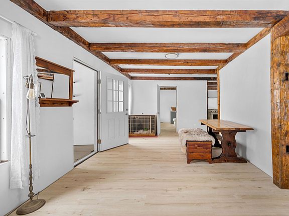 VT Cape Farmhouse located in a pretty spot above the Sunny Brook on 1.2+/- acres. Low-traffic, dead-end side street w/ acreage on both sides of the street. Extensive renovations completed over the past 2 years, but still exterior projects await next owner. House was leveled, stabilized w/ added support, w/ 1st floor gutted and reinsulated with R15 rockwool. Layout adjusted for improved flow and use. Kitchen enlarged w/ new 36" professional gas range and 40" hood, new farm sink, sink cabinet and counter built out of salvaged barn wood. Walk-in pantry w/ hardwood flooring. New 1st floor bath w/ clawfoot tub, laundry closet and room for a corner shower. Wood stove w/ slate tile hearth. Some exposed softwood floors upstairs. New paint throughout the upstairs. Gigantic barn was detached from the house, leveled and support added. Chicken Coop/shed with T-post fencing, plus additional fenced pen across the street on owned land. Pear, peach, plum and apple trees. Mulberry, blue berries golden raspberry and red raspberry bushes. Garden space, too! Less than 4 miles to Baker Pond, Allis State Park, Norwich University and Northfield. Less than an hour to Stowe, Sugarbush Valley or Killington if you ski. Seller will be installing a 18,000 BTU or greater heat pump mini split unit prior to closing.