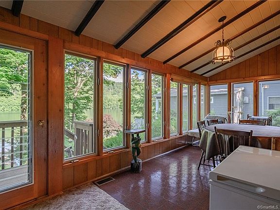 Fabulous New Price on this waterfront home!!! Charming Cape Cod home in Candlewood Trails lake community with 81 feet of direct water frontage: Large living room w/wood floor boasts fieldstone fireplace providing a touch of ambiance! Vaulted ceiling gives room more spacious look, & exposed beams & 2 ceiling fans add a lake feel + keeps it comfortable. An enclosed porch offers spectacular view of lake from wall of windows & is a perfect place to sit & relax or enjoy a "meal with a view"! Convenience of 2 bedrooms on main level & another 1 upstairs in open area. Galley kitchen provides all the necessities. Beautiful newer dock w/long walkway to deep water is perfect home for a boat, fishing or sunbathing. Home was originally built as seasonal home & was used as that for many years. Propane gas, forced air provides the heat but home could use additional insulation which could be added for year-round living. Propane heat is upstairs as well. Homeowner's Assn w/dues of $2,074 for 2020 maintains the roads, covers trash pickup from Memorial Day to Labor Day, maintains private beach for development & also provides your water. Home sold as is, but a direct water front home in a lake community at $599,000! You must come take a look!!! Please be sure to observe all safety precautions for the Corona virus! Show only to serious buyers & please wear masks & gloves & carry sanitizer with you to wipe off any door knobs (both sides) or cabinets, faucets or light switches that you touch. Executor/tenant to leave all lights on inside & all inside doors open to eliminate a lot of touching of surfaces. No children should be in the house at any time - for their own protection. Someone needs to stay outside or in the car with them while the parent is inside for the showing. Buyer agents must accompany their clients into the home for a showing. If Executor/tenant's truck is in driveway, only 2 more cars will fit so please bring as few cars as possible. There is a pull-off in front of the house to accommodate 2 cars. Please do not use someone else's pull-off & do not park on the road! Thanks so much for your courtesy!