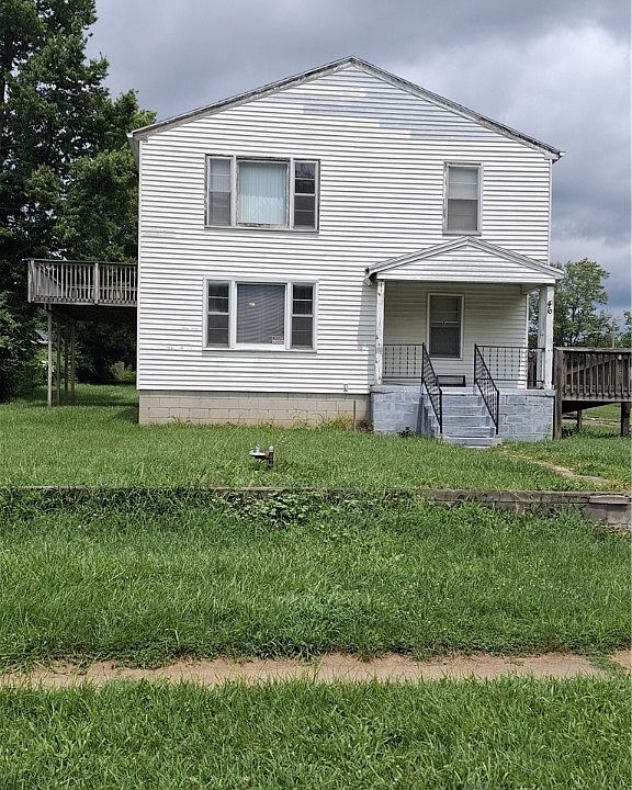 This is actually a large two story with An apartment on the first floor and an apartment on the second floor on an acre lot. There is a three car garage. The downstair apartment has acsess to the 1 car garage and the upstairs apartment uses the the two car garage. There is a nice deck located upstairs. The kitchen and bedrooms are very spacious.