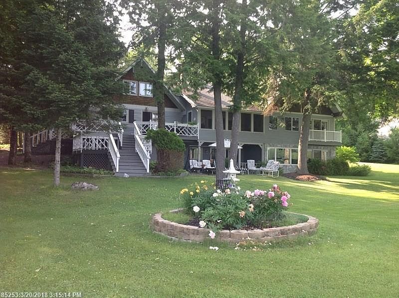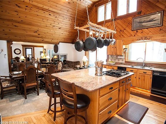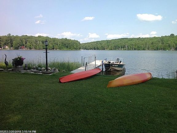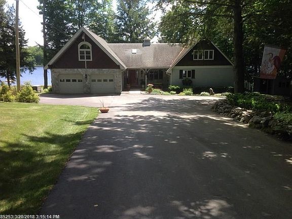Property is conveniently located 15 mins from I95, 40 minutes to either Bangor or Waterville. The property has cedar siding and real stone! Step inside to a fabulous kitchen complete with granite counters,as cook top, double oven,hanging pot rack over the island, dishwasher, microwave, trash compactor, and refrigerator. The home boasts 4 bedrooms and a loft. The two bedrooms upstairs share a bath. Step outside and enjoy 200 feet on the water, dock, patio, deck, and beautiful landscaping. This home offers all the amenities one could wish for: Master bedroom suite,1st floor Laundry,2 Fireplaces, Auto generator,and alarm system. Home will be partially furnished. Two out buildings: The boat house, 24x36 , is located at the top of the driveway and offers storage overhead the boat house includes 3 LLbean Kayaks, 1 Canoe,and 16' Bass Tracker fishing boat w/50hp motor 10x20 storage shed,1.43 acres beautifully landscaped! Come see! You won't be disappointed!
