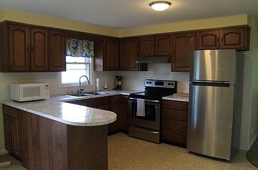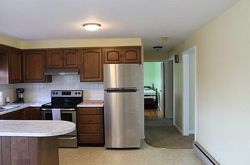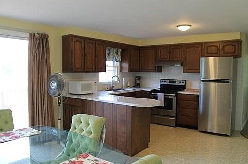 WATERFRONT on Merino Pond, upper level of home with 2 good sized bedrooms, living room, and kitchen with eat-in area. Freshly painted with new carpet and completely renovated full bath. Hardwood floors in bedrooms. Dining area of kitchen has a slider to a (20x10) deck overlooking the pond. New stainless steel appliances. Tenant will have use of washer and dryer in lower level. Tenant will also have use of one bay of garage. Off-street parking. Lower level will be used on occasional weekend by landlord. Merino Pond is fully recreational. MORE PICTURES TO FOLLOW.