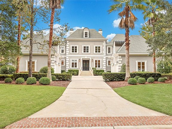 Nestled in the prestigious Berkeley Hall community, this luxurious estate offers sophistication and Lowcountry charm. Known for its world-class golf courses and unrivaled amenities, Berkeley Hall sets the stage for a lifestyle of distinction. This luxurious home boasts 5 bedrooms, each with a full ensuite bathroom, including two lavish primary suites. Highlights include a chef’s kitchen, exceptional custom carpentry, and a grand fireplace that creates a warm focal point in the living space. Relax on the screened-in porch or the second-story open porch overlooking panoramic fairway views. Dual 2-car garages complete this exceptional property.