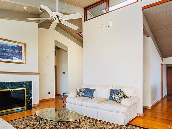 Magnificent Mountain Getaway just 90 min. from GW Bridge. Multi-windowed Contemporary nestled on 4 acres of beautiful woodlands, set on the very top of a mountain in historic Cragsmoor. Backs to protected 5,000-acre Sam s Point Preserve with amazing hiking trails. Expansive windows framed in rich wood add to space that's enveloped by natural light with a deep connection to the outdoors. Landscape includes perennial gardens, flowering bushes, and ornamental trees.Perfect entertaining home offers an open floor plan leading to a large back deck for barbecues or a glass of wine at sunset. All rooms boast spectacular vistas of the Hudson Valley and Shawangunk Mountains. Living room fireplace plus vaulted wood-beamed ceilings add to the charm.Large Master Suite with walk-in closet, jacuzzi tub, and skylight. Comfortably sleeps up to 16 people in a combination of its 3 bedrooms, 3 baths, and 3 sofa beds. Ideal for gatherings of family and friends or as an Airbnb investment. Rare find.