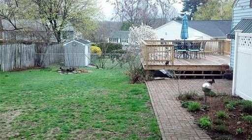 Charming 7 Room, 4 bedroom, 1 bath vinyl sided cape. Family room with berber carpet offers a slider that overlooks a newer spacious deck in a fenced in back yard with koi pond and smaller fountain. Kitchen offers updated maple cabinets with under cabinet lighting and crown molding, corian countertop, dishwasher, microwave and GAS stove.! Tiled bath with new toilet and vanity. Livingroom features a brick fireplace, hardwood floors and bay window. Roof approx. 5 years, Installing new electric panel. Plenty of bedrooms with 2 bedrooms up with carpet and bench window seating. 2 bedrooms downstairs with lovely hardwoods and 1 with a bay window. Full unfinished basement that is clean and freshly painted. GAS hot water tank. This cape is ready to move in and make it your own with personal touches. Convenient location and great neighborhood setting.