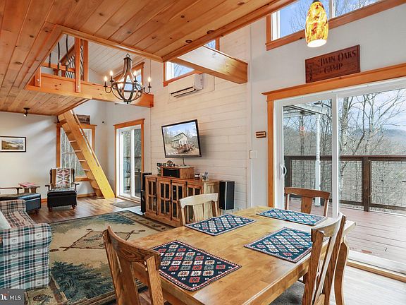 Welcome to Twin Oaks Camp – this luxury cabin is the retreat you have been longing for. Step inside and instantly sense the transition into a feeling of relaxation and serenity. The home has an open and contemporary concept showcasing a wonderful living space, vaulted ceilings and a clear view of the iconic Helmick Rock. In fact, spectacular mountain views are available from virtually every room of this well cared for home. Equipped to accommodate most any family or guest scenario via the large master suite on the main level and cleverly designed second story loft area. Ample kitchen space and a separate dining area allows for an easy open transition. The wrap around deck is accessed by French doors off the dining area and additional double sliders on the rear deck. This is an exceptional property for those who desire full nature and scenic surroundings and is the ultimate location for privacy. HOA allows short term rentals making this a potential investment dream come true! Remote workers will be happy with the high-speed fiber optic internet service for this area. Ample storage via 2 storage sheds perfect for outdoor toys and tools. For additional guests the sellers have installed an external power supply and septic connections for RV/Camper plug-in and hook up. This home is a hidden treasure, under 2 hours from the Northern VA / Washington DC area. The current owners have been the proud stewards of this property since 2005 have fondly shared a wealth of information found in the documents section of the listing and worth taking a moment to read.