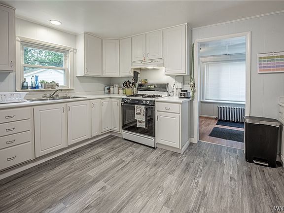 This home will check all the boxes. Outside you will find vinyl siding and vinyl energy saving windows, large fully fenced back yard with a two-car garage. On the main floor is the side entrance mud-laundry room, great kitchen with white cabinets and 2022 flooring. The stove, refrigerator, washer and dryer are included. Bright formal dining, first floor bedroom or office space with access to lower fully updated bath