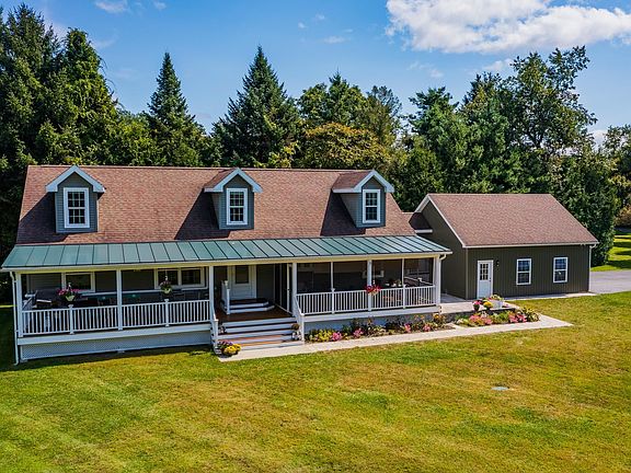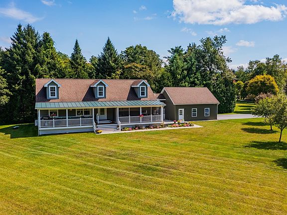 Discover this charming 3-bedroom, 3-bath cape, built in 2014 and surrounded by breathtaking mountain views. Nestled on a level lot with direct access to the Battenkill River beach, this home features a spacious bonus room and a two-car garage. Enjoy the generous front porch, inviting stone patio, and expansive lawn while taking in stunning sunsets over the Green Mountains. The open floor plan includes a roomy kitchen with a detailed island, seamlessly connecting to the dining and living areas. Cozy up by the gas stove in winter or cool off with new mini-split AC units in summer. The main floor offers a primary bedroom with a luxurious en suite bath, plus an additional bedroom and a versatile office/den that share a beautifully appointed full bath. The second floor boasts a third bedroom with a tiled bathroom and glass shower. Scratch-proof engineered hardwood floors flow throughout, leading to the large studio with a mini kitchen and sliding glass doors to the patio. A covered breezeway connects the stylish laundry/mudroom to the expansive two-car garage. For just $210 a month, the HOA covers mowing, snow plowing, and trash services, making this an ideal full-time residence or Vermont getaway. Don’t miss this rare opportunity to own in the private Battenkill Valley community. Call today!