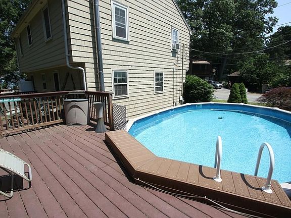 Welcome Home To North Reading!! This 4 bedroom, 2 bath Garrison Colonial is situated on a flat 1/4 acre lot on a Very Quiet dead end Street, yet is close to major highways, and the Wilmington Commuter Rail. The home has an open concept Kitchen/Dining Room area, a full bath a home office and a family room. There are hardwood floors through out the fist floor with the exception of the kitchen and full bath. The first floor opens up to several deck areas one with an above ground pool, both over looking the flat backyard. The second floor has 4 large bedrooms the master has a double closest and access to the walk up attic. There is also another full bath. This home could use your touches and updates but what a great home with lots of room, a one car garage and a full basement that could definitely add additional living space.