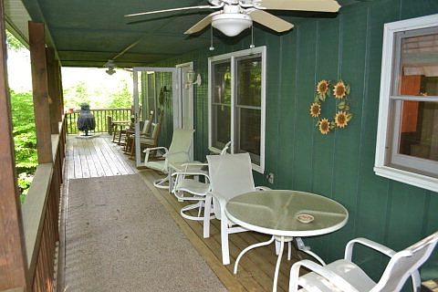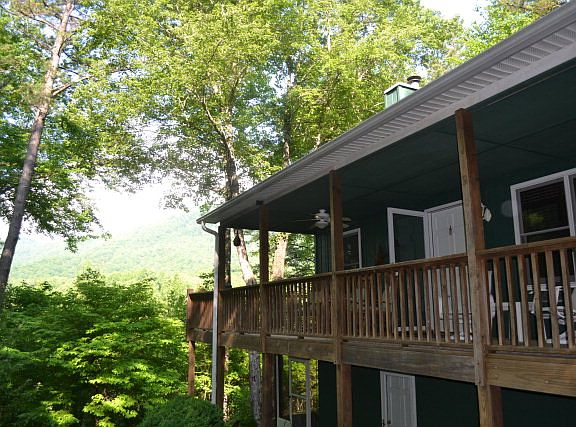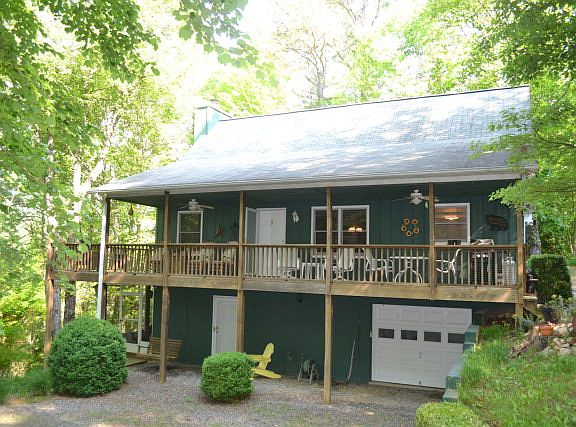 Enjoy the year round rock face & short range mountain view from the large view windows* that surround the soaring 2 story stone fireplace in this amazing pristine mountain chalet home that has been beautifully landscaped. Outdoor living space includes large covered & uncovered porches as well as a newer screened in porch off of family room in basement. Custom kitchen cherry maple cabinets, dual pantries, hardwood floors, custom wood blinds & doors. Loft bedroom has a full bath & finished lower level has a family room (or 3rd bedroom) with laundry closet, full bath, and single car garage