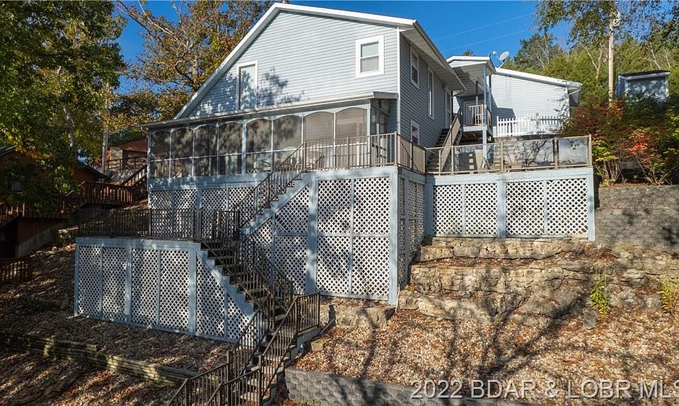 Lake Front Home in a Great Location by land and water! As the Road Name says, the water under the dock is minimal-at full pool, 6-7' deep. Good all year except Winter! Located in a long cove off of popular Bollinger Creek Cove at the 44mm and off of Irontown Road) on Hwy. 7 just north of Greenview! 3 Bedrooms, 2 Baths, 2-Car Det. Garage, Concrete driveway and parking. Includes 2-well Dock. Top floor has a large entry way which could be used as an office area and a Loft room overlooking the Living room below which can be used for extra sleeping space! Living room has vaulted ceiling and a wood burning fireplace. Relax on the Screened deck or hang out on the adjoining open deck space! This Cove setting provides ample space to hang out in the water. There is also a storage shed on the lakeside for all your water toys! Home & Garage have vinyl siding for easy maintenance and desert landscaping! Includes all Furniture & Appliances plus a chair lift on the inside staircase.