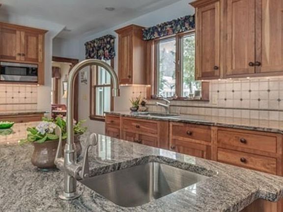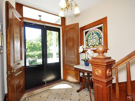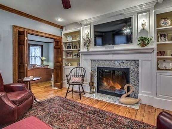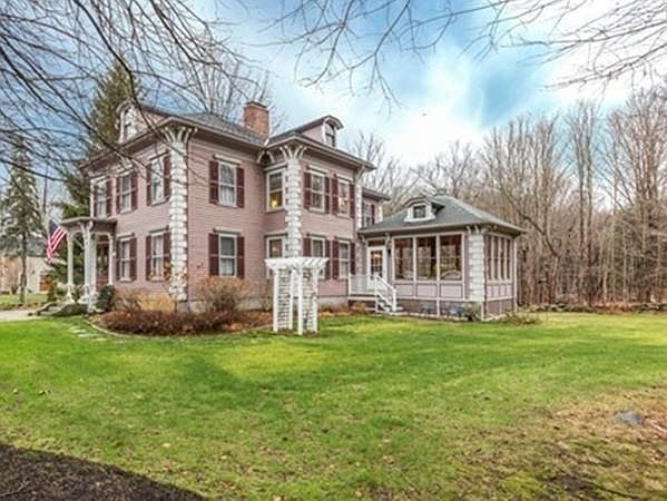 Fantastic location close to the village center - stroll down for your morning coffee - and nestled between a gorgeous town garden and extensive conservation land to the rear. Spacious meticulously maintained and extensively renovated home providing the very best in family living. The renovations include large gourmet kitchen with eat-at island, casual dining area and control center plus a new fire-placed family room with three walls of glass overlooking the beautiful land, new garage, new mudroom, built-ins, new furnace and AC. Upstairs are five bedrooms, including a fire-placed master, and full bath. A three-story carriage house is partially attached to the main house through the mudroom that leads to the kitchen. The lower level has great storage with wide door access to the back yard while the upper level could accommodate a large master suite. A lovely landscaped backyard with mature trees, shrubs and gorgeous perennials helps make this historic landmark a very special home.