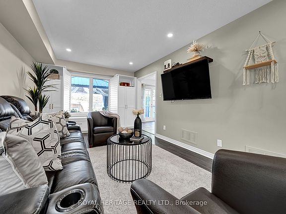 Welcome to 46 Lownie Crt! Beautifully updated 3+1 bdrm, 4-bath link home on a quiet, family-friendly court in desirable Bowmanville, backing onto Guildwood Park. This warm & stylish home offers comfort & functionality throughout. Main flr features a convenient 2-pc bath, cozy liv rm w/ built-ins & Calif shutters, & an inviting eat-in kit overlooking the serene backyard. Kit boasts quartz cntrs, farmhouse dbl sink, SS gas stove w/ dbl convection oven, & dbl patio drs leading to your private retreat. Upstairs offers 3 generous bdrms, incl a 2nd bdrm w/ gas FP & bright 4-pc bath. The spacious prim suite features a 4-pc ensuite w/ glass shower, dbl quartz vanity, & convenient in-suite laundry. Triple-pane windows in the prim bdrm & laundry enhance comfort & energy efficiency. Fin lower lvl offers a sep entrance through garage, kitchenette, & 3-pc bath, providing fantastic flexibility - ideal for in-laws, extended family, or guests. Also features a spacious rm currently used as a bdrm (no egress window) - perfect for guests, home office, or hobby space. Step outside to your own private oasis - gas-heated salt-water pool, salt-water hot tub, gazebo, & BBQ w/ gas line make this yard an entertainer's dream, backing onto the peaceful greenery of Guildwood Park. Enjoy nearby Soper Creek trails, mins to parks, schools, shops, amenities, & easy 401 access. Move-in ready & filled w/ thoughtful updates - this home truly checks all the boxes!