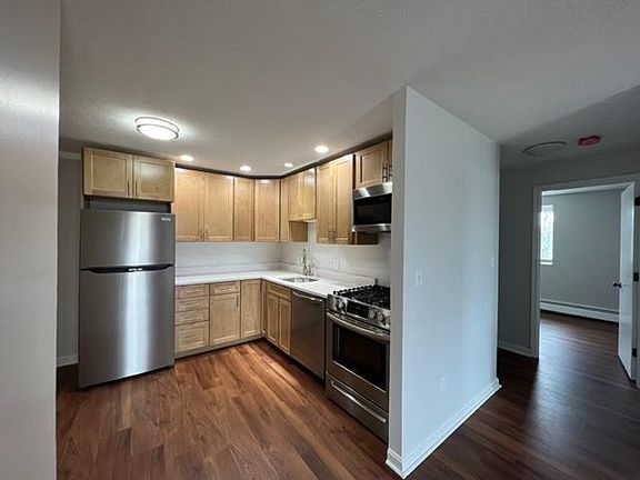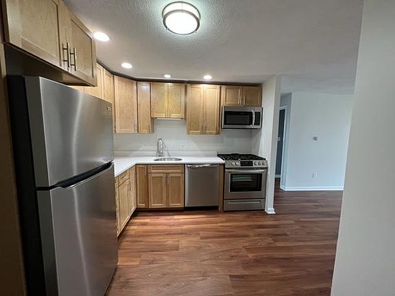 Newer kitchen cabinets, newer appliances (stainless steel), newer quartz counters, newer vanity / toilet in bathroom, newer flooring, and professionally cleaned. Bright and sunny 2 bedroom condo, top floor, corner unit. Eat-in kitchen with gas stove. Just move in and relax. The complex is located close to shopping, transportation and the highway. Pool and wall air conditioner for those warm days. No pets, no smoking, 2 parking spots. Lease includes heat, hot water, and gas. Tenant pays for electricity. Tenant to adopt rules and regulations of the condo association. The beginning of the lease is dependent on a successful background check including tenant screening reports, credit checks, criminal background checks, and rental history references. First months rent, last months rent, and $2,000 security deposit due upon signing of lease. First months rent, last months rent, and security deposit due at signing of lease. Tenant pays for electricity / cable / internet. Gas, heat, hot water included in rent.