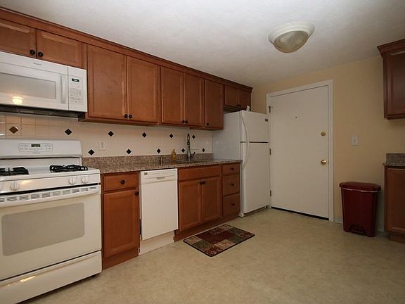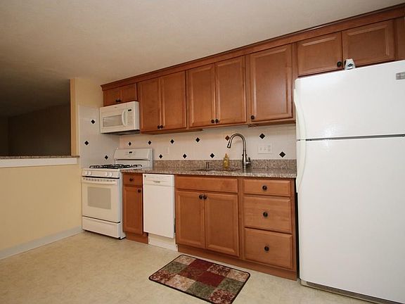 Newly remodeled one bedroom garden style condo features fully applianced eat-in kitchen with maple cabinets, granite counters, tile back splash and island seating opens to living room, spacious bedroom with walk-in closet, beautiful new tile bath, new carpets, doors, windows and trim around windows. Freshly painted ready for new owner. Conveniently located lower level unit steps to laundry room. Low condo fees include heat and hot water. Great complex community with court yard and pool.