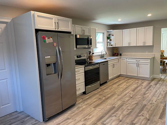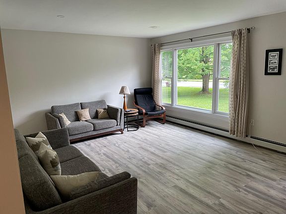 House is available October 15th for short or long term rental Recently renovated three bedroom two full bathroom house available for long term rent in the quaint village of Hyde Park Vermont. As you enter the front door an open living room with couch, love seat, chair and large flat screen TV greet you. Straight ahead you will find the kitchen and to the right are two bedrooms and a full bath. The dining room is located next to the kitchen behind the living room and the master suite with full bath are located just off the other end of the kitchen. The residence also features a two car garage, basement and large, tranquil backyard. The dwelling location is ideal...merely five minutes from Morrsiville, less than 20 minutes to the village of Stowe, 30 minutes to both Stowe and Smuggler Notch ski resorts and less than an hour to Burlington and Jay Peak. Many other local attractions from the Lamoille Valley Rail Trail to swimming holes and local breweries are at your doorstep. Owner pays for landscaping and snow removal. Renter responsible for all other utilities eg cable, internet, electric, fuel, water