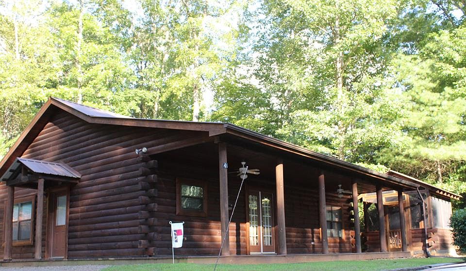 LIKE NEW... one owner only used for vacations! Real Log cabin with warm inviting interior. Plank floors, wood walls vaulted ceiling, gas logs in living room, spacious feel, 2 bedrooms and 2 baths. Baths are large, and bedrooms larger than many cabins. Covered rocking chair porch and a separate screened porch. Room for a carport. Convenient location.No driving down long curvy steep mountain road to access...yet private. Most furniture goes with cabin with exception of living room, a rocking chair, and sentimental items.