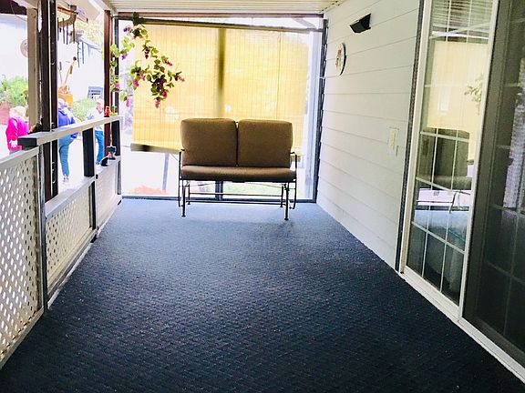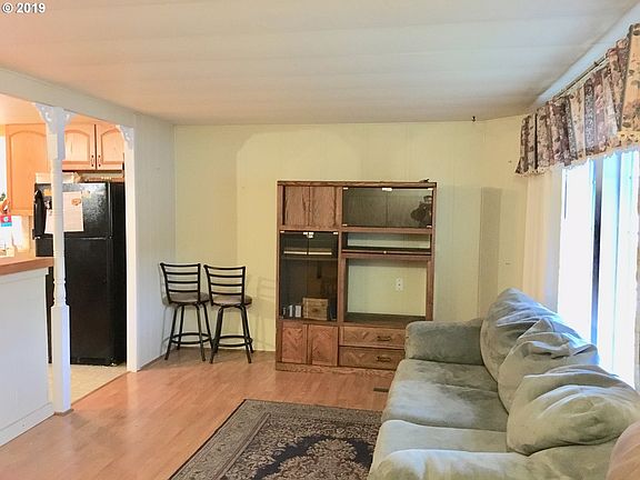 Very nice 55+ Mobile Home Park. The home has end of the road privacy. Updating includes vinyl windows, the roof is approximately eight years old. Updated Hardi Board siding, there is a 20x10 shop and a 20x7 covered deck plus a covered patio, also newer laminate flooring. The kitchen cabinets are updated as well. Great low space rent.