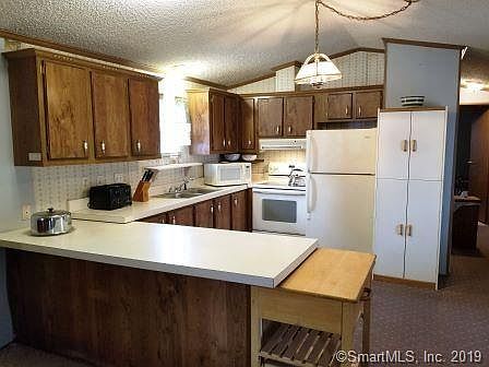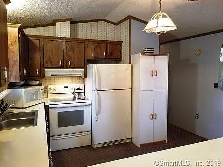 Enjoy easy living in this home with plenty of yard, treed in rear for privacy and in a desirable well-kept park. The large open space kitchen leading to living room gives the home a light airy feel. The side enclosed porch and front sunroom are perfect to relax in. There is a large covered deck to enjoy the outdoors and grill and the two outbuildings will give you plenty of storage space. Possible financing. Pets allowed.