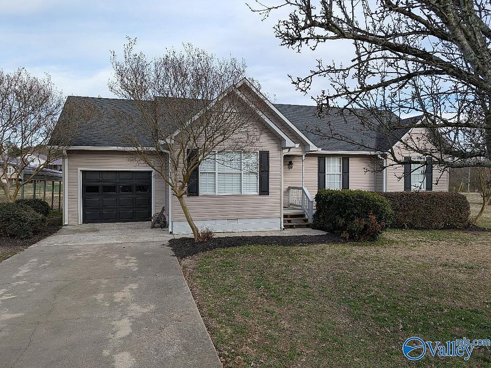 Nice 3 bedroom 2 bath home conveniently located very near Guntersville Lake boat ramp. Good size bedrooms with laminate flooring throughout. Garage, rear deck, storage building and metal carport. Vinyl siding and architectural roof.