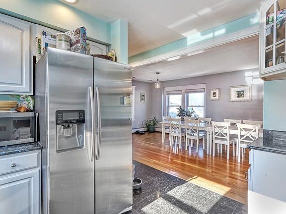 Charming, spacious colonial in desirable Squantum neighborhood. Steps from Squantum Elementary School and park. Just a short walk to Nickerson Beach. Pick peaches, apples, pears, blueberries, and raspberries in your own yard from mature fruit trees. This home boasts 5 bedrooms and 3.5 baths including a master bath and beautiful hardwood floors throughout.. A recent addition was put on with modern updates to baths and kithchen with granite countertops while still preserving it's old world charm. Features outdoor patio, detached 3 car garage, and enclosed porch. Newer roof and hot water heater. Owned solar panels on the roof and a wood pellet stove with gas back up. Pay nothing for electricity! . Easy access to highway, N. Quincy T station, and downtown Boston. Won't last!