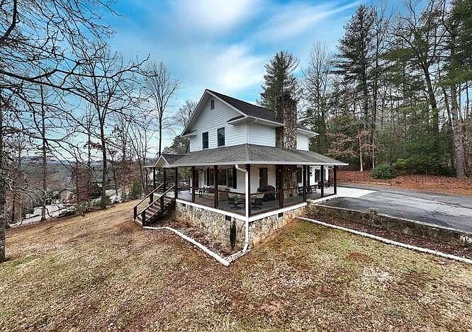 CHARMING FARMHOUSE WITH STYLE AND EXCEPTIONAL LOCATION! Less than 3 miles to town and WALK TO THE MARINA. Hangout on your wrap around front porch and ENJOY THE MOUNTAIN AND LAKE VIEW! UPDATED THROUGH OUT with soft close cabinets, 3 pantries ,pull out drawers, granite, butcher block bar. Beautiful bright and spacious living area with cozy fireplace. Large Master on the main with SPA bathroom, free standing tub and separate shower,2 sinks, custom closet. Laundry on main level, half bath for guests and mud room that you can let your pets out to fenced area. Two bedrooms upstairs with updated bath. 1.46 acre of landscaped property that gives you privacy and lots of flowers ready to bloom soon! TWO SHEDS, propane tank is owned. Two heating units, Lots of paved parking and a 2 car covered carport.NO HOA fees or Restrictions. Bring your boat or RV plenty of room .THIS IS TRULY A HOME SWEET HOME!