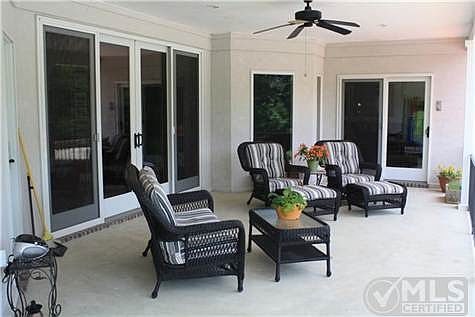 Contemporary home, great curb appeal w/ lush landscaping, eye-catching detail in stucco & gorgeous front door. Covered back porch is accessible from LR, FR, master bedroom & 3/4 bath & leads to pristine inground salt water pool w/ patio & covered areas. Interior features inc hardwood flooring, recessed lighting, soaring smooth & trey ceilings, granite counters, SS kitchen appliances including warming drawer, gas log fireplace, glamour bath, 2" wood blinds throughout, Andersen windows,safe room in basement.