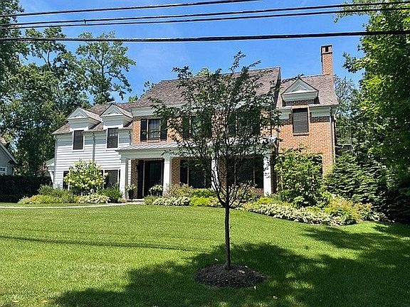 This is a newly constructed brick home with contemporary details on the prettiest part of Riverside's Meadow Road, near the decorative fountain and bordered by a lovely wooded section. A formal entrance leads to open floor plan with eat-in kitchen, family room, dining area with wet bar. First floor also includes two offices and mudroom. Upstairs includes master suite with balcony overlooking brook and full bath, an en-suite bedroom, 2 bedrooms that share a full bath, and a laundry room. Spacious basement with 9 ft ceilings includes recreation area and guest suite with full bath and walk-in closet. Attached, 2-car garage.