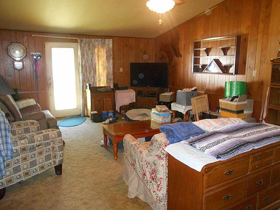 Double wide needs some work but is very spacious. The property has a nice shop with entrance door and a garage door. It has electric and concrete floors. There are two additional sheds, one with electric. There is an open area that would be great for your animals. This property has so much potential! Heat is a propane heater.