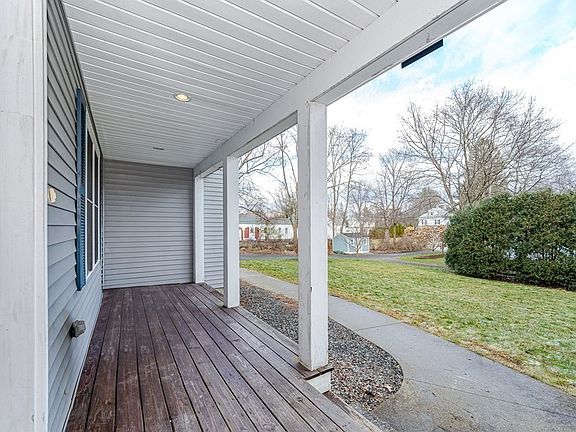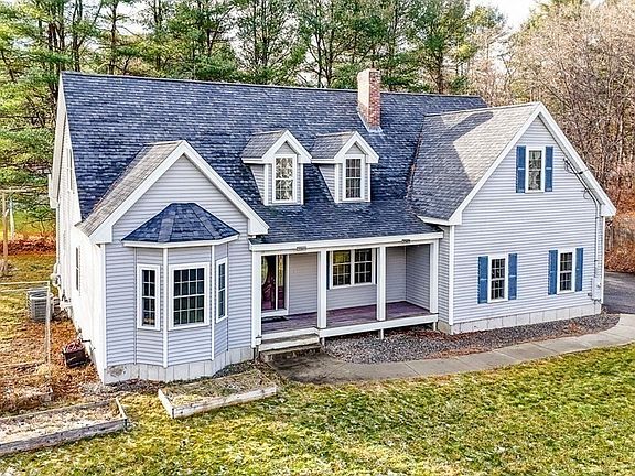 Welcome to this exceptional 3 bedroom, 2.5 bath home located on a level lot on a quiet street. Built in 2011, this property is set back from the street and features a first floor primary suite, second floor laundry, home office & bonus/entertainment room. The front door of this Contemporary Cape opens to a foyer with a living room on the right hand side. A wood-burning fireplace w/ stone surround is the focal point of this room, which opens into the eat-in-kitchen w/ granite countertops, stained oak cabinets, peninsula island, and stainless steel appliances. French doors leading to the deck create a nice entertaining flow. Primary suite has a beautiful bay window overlooking the front yard, large walk-in closet and attached primary bath with double vanity sinks and a tiled walk-in shower. A hardwood staircase leads upstairs to a long central hallway connecting 2 spacious bedrooms and 1 full bathroom. Town water & sewer, natural gas, & central AC.
