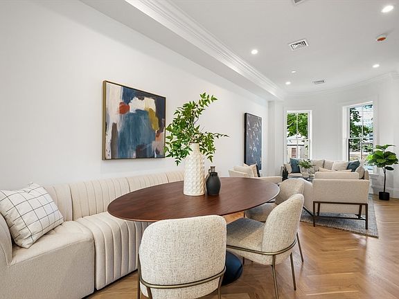 2024 New Construction single fam in the South End’s enviable Golden Triangle. Goldilocks size w/3,241SF, this 4 bed PLUS option for additional office/bed home is ideal for entertaining/family style living. Bow front parlor w/high ceilings showcases white kitchen w/Sub-Zero/Wolf & counter seating, dining/living, half bath & direct access to rear deck. One floor away at street level is 2nd family room w/gas FP, bar area, mud-room like area, full bath, optional office & 2nd entrance from sidewalk. Garden/lowest level offers 3rd family room w/gas fireplace & wet bar leading to private bluestone patio, additional office/sleeping area/gym & full bath. King-sized primary suite only 1 floor from the kitchen features large walk-in closet/marble bath w/double sink vanity & step-in shower. 4th bed/office compliments primary bed level. Top floor w/2 full sized beds, full bath en-suite & off hall, laundry & dry bar. Still time for some customization. 1 yr garage parking included 3 min walk away.