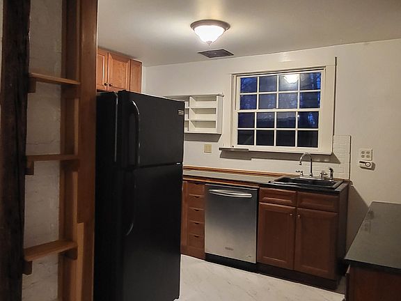 The Millerton House is an airy 3 bedroom home spread over 2-Floors. The ground floor has an outdoor deck entrance into the open dining room and kitchen. The dining area has 3 large windows bringing in lots of natural light for a bright dining space with enough room for a table of up to 6. The kitchen has an oversized window above the sink, granite countertops, a full size gas range stove with overhead microwave, a full size refrigerator, ample cabinet space for pantry items, dining ware, cookware, and storage. A new ceiling fan and lighting, and bright laminate floors. The open ground floor plan continues into the living room space with original exposed wood beams in the ceiling, and original hardwood floors. The bathroom entrance is off the living room. The large bathroom features a full shower and bathtub, under the sink cabinet, and a vanity cabinet above the commode. Across the bathroom is a bonus Sunroom/Mudroom with an optional entrance for seasonally inclement weather. Connections for a washer and dryer are located in the Sunroom (if interested, please ask for additional details about washer and dryer). Alternatively, with it's mountain sunset views, the Sunroom makes a quaint office or exercise space. The newly built low-incline stairwell off the dining room heads to the second floor where a small hallway with original wood railing and hardwood floors leads to the 3 bedrooms each with its own closet, overhead lighting, and each with 2 windows. The exterior of the home includes a large private outdoor deck, a private 12 x 12 garage storage space, and a relaxing firepit area. There is ample parking for 2 vehicles in the long driveway. The Millerton House is located on a quiet street in the Village of Millerton and a short 3 minute walk to Main Street restaurants, coffee shop, antique shops, boutique clothing stores, art gallery, wine shop, movie theater, hair salon, post office, community center, library, pharmacy, hardware store, gas station, seasonal Farmers Market, and the Harlem Valley Rail Trail. The home heat and hot water are propane fueled. The mailbox is on the property. No P.O.Box required. 6 or 12 month lease options available. This is a non-smoking lease. $500 pet cleaning deposit is non-refundable.
