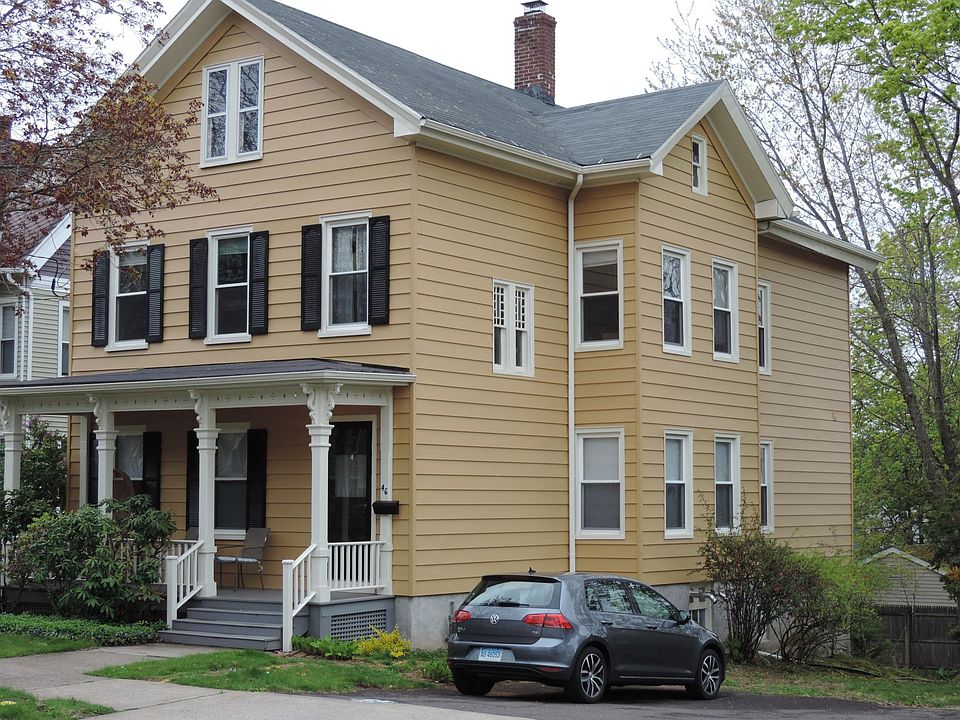 1st floor, 2 bedroom apartment in Victorian style two family home. Updated kitchen has maple cabinetry, smooth-top, self-cleaning stove, area for table/chairs and ample storage. There are two large living spaces. One may be utilized as a dining room, home office or simply an extension of the living room. Master bedroom has an original corner hutch and two large closets. Lots of big, bright, replacement windows throughout the apartment. Bathroom is large at 13 feet long. There are new fixtures, plenty of lighting and ceiling fan. Outdoor areas include a shared deck, Victorian style front porch, and small back yard. Private washer and dryer are provided in basement. Heated by natural gas furnace with programmable thermostat. Garbage removal, snow removal and lawn care are included in rent. Non-smoking inside & outside - no exceptions. Excellent credit history and verifiable income are required. No pets please. This well maintained home is on a quiet, one way street near Choate campus. Walk to quaint town center. Brick sidewalks, tree lined streets and period street lights, make Wallingford a destination for the adjacent towns of Cheshire, North Haven, Durham and Meriden. Within walking distance is our expanded library, Post Office, ice cream & coffee shops and lively restaurants & pubs - several which offer live music. Commercial route 5, is home to many supermarkets, and chain retail stores for much of your shopping needs. Convenient access to all points along routes 15 and 91, both of which run through town. Wallingford has a wonderful 800 acre natural preserve that is popular with runners, hikers and mountain bikers. CT's blue blazed hiking trail runs through the Tri-Mountain area of town. A linear trail along the Quinnipiac river, two wineries, Oakdale Musical Theatre and proximity to Sleeping Giant State Park are among the local attractions. Note from the Landlord: I am a licensed CT Real Estate Sales Agent, as well as the owner and property manager for this home. I prepare each apartment myself, so I know it is done well. I provide excellent customer service throughout your stay. I am easy to get in touch with, and make repairs promptly. I take great pride in my apartments and promise that it will be properly prepared before you move in. I paint the walls and/or trim so that it has a nice, fresh appearance. I ensure everything is clean, including the refrigerator, stove, counters, tub and toilet. I will scrub, mop, vacuum or shampoo floors, wipe out all the cabinets and repair odds and ends that need attention. I schedule maintenance during business hours so that you may enjoy peace and quiet during evenings and weekends. I do a nice job with lawn care and clearing snow. I typically give an approval / denial within 24 hours of receiving an application. There are many nice apartments in town, some for a few dollars less than what I offer. Please consider the attention and service I provide when making the choice that is right for you. Kindly contact me for information and availability on this, or other apartments I offer. Jack