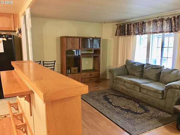 Very nice 55+ Mobile Home Park. The home has end of the road privacy. Updating includes vinyl windows, the roof is approximately eight years old. Updated Hardi Board siding, there is a 20x10 shop and a 20x7 covered deck plus a covered patio, also newer laminate flooring. The kitchen cabinets are updated as well. Great low space rent.