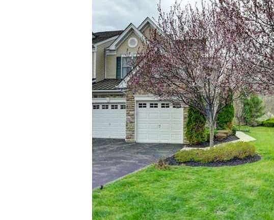 Simply Impeccable! Light-filled Lindenhurst End Unit with 3 bedrooms, 2.5 baths and 2 car garage on large lot in The Estates at Princeton Junction Carriage Collection. Model perfect with many luxurious upgrades! Inviting 2 story foyer flanked by formal living room with vaulted ceiling and dining room with crown molding and tray ceiling. Upgraded 3-1/4" hardwood flooring throughout first floor. Gorgeous gourmet kitchen with: center island containing Viking professional oven, appliance drawers and tray storage; SUB ZERO Refrigerator; 42" Maple cabinets; granite counter tops; upgraded faucets, disposal, dishwasher; built-in Instant Hot water; greenhouse window with skylight and rear door leading to backyard with well maintained mature trees. The family room adjacent to kitchen features a fabulous custom built-in Yorktown Maple Wood bookcase and a gas fireplace with beautiful custom mantle. The family room also features a built-in buffet/beverage bar topped with absolute black granite for entertaining in style. Powder room and laundry complete the 1st floor. At the top left of the custom carpeted oak staircase, enter a master bedroom overlooking the pond, with spacious walk-in closet. Master bath features Corian topped dual vanity with upgraded faucets and light fixtures, Jacuzzi tub and clear glass shower enclosure. Hall bath with glass tub enclosure and 2 additional bedrooms with volume ceiling complete this level. North facing front door, Security system, and full basement. Award winning West Windsor-Plainsboro Schools. Amenities include pool, tennis, fitness & playground. Walking distance to Duck Pond Park & Princeton Junction train station. Close to RT 1 shopping, malls, restaurants and downtown Princeton.Finished basement with luxury vinyl plank flooring.
