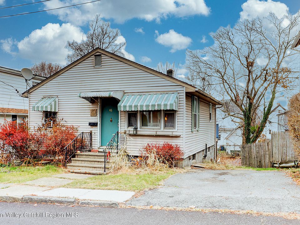 Super location just minutes from Kingston's vibrant waterfront, with its unique shops and diverse dining options. This cozy bungalow sits near the end of a quiet dead-end street, a couple of blocks from historic West Chestnut Street. Here's an affordable and low maintenance alternative to paying rent! Inside, the bright and inviting living room flows into an eat-in kitchen, with sliding doors that open to a back deck—perfect for outdoor dining or unwinding while overlooking the spacious backyard. The main level features two bedrooms, which could be combined, as they once were, to create a larger, more versatile space. The semi-finished basement adds even more possibilities, with two rooms—one featuring glass doors that open to the backyard. These spaces, previously configured as one larger room, can be customized to suit your needs. An insulated backyard shed, equipped with electricity, provides additional functionality.