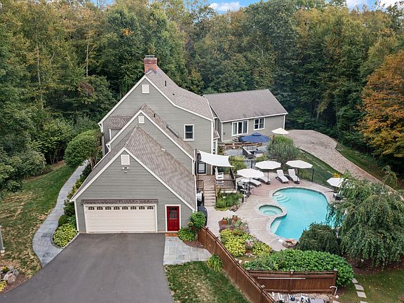 Welcome to 46 Nod Hill Road - an exceptional property that blends timeless farmhouse charm with modern updates designed to impress. Set on a private 2+ acre lot within a desirable cul-de-sac neighborhood, this impeccably cared-for home offers generous space for entertaining while comfortably accommodating family and guests. The main residence features 4 bedrooms, 2.5 baths, 3 fireplaces, a brand-new chef's kitchen with Wolf and Sub-Zero appliances, and an open, sun-filled floor plan. Connected by a breezeway, the in-law/rental apartment adds versatility with 2 bedrooms, 2 full baths, its own fireplace, a finished walkout basement, and a private garage-ideal for extended family, guests, or rental income. Outdoors, the property lives like a private resort. A heated saltwater pool takes center stage, framed by stone patios, a hot tub, and lush gardens. Multiple seating areas create inviting spaces for quiet evenings or lively gatherings. A detached barn with electricity, heat/AC, and WiFi expands the possibilities-currently a gym, it can easily serve as a studio, office, or creative space. Every detail reflects thoughtful design, combining comfort, style, and privacy. From morning coffee in the new kitchen to sunset swims by the pool, this is a home built for living beautifully every day.