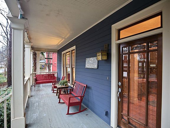 Gorgeous updated Charleston Style home in East Lake - Large open floor plan with recently refinished hardwoods throughout. Formal Dining room, eat-in kitchen with white cabinets, granite countertops, and stainless appliances. Massive den with cozy gas fireplace. Primary Bedroom features french doors leading to a private balcony that extends the width of the house, two walk-in closets, bathroom with separate shower, tub and double vanity. Two light-filled secondary bedrooms and full guest bath upstairs. Cheerful laundry room. Detached double car garage with stairs to Bonus room - perfect for office or hang out space. Screened Porch overlooks a private wooded backyard. Convenient to Oakhurst, restaurants at 2nd and Hosea, and Kirkwood.
