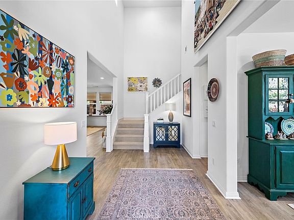 Welcome Home to this highly upgraded Smart Home with its own private driveway in Rancho Mission Viejo. This Single-Family Home offers 3 bedrooms plus office, 3 1/2 baths, with one bedroom with full bath on the first floor. From the moment you step into the 20’ entry and see the wonderful natural light showcasing the Luxury Vinyl Plank floors that continue through the downstairs, you'll know this house is the one! Convenient Office/Den to the left of the entry is the perfect work from home space, play room or gym. To the right, the White Shaker Kitchen with Marble veined Quartz Countertops and Solid slab backsplash and stainless steel appliances opens to the generous dining space. Adjacent Great Room with recessed lights and custom window shelf with single hung French door to coveted Outdoor Room and Zen Backyard Space. The Powder bath plus laundry room with plenty of storage are tucked into the hallway. Continue to the downstairs bedroom suite with blackout shades, ceiling fan, walk in closet and ensuite bath with step in tiled shower. Just upstairs is the 3rd bedroom and bathroom suite and the Primary Suite. The oversized Primary bedroom has abundant windows illuminating the tranquil space, custom shades on all of the windows and ceiling fan plus adjacent ensuite bath with dual sink vanity with quartz countertops, a soaking tub with quartz decking & large separate walk-in shower plus walk-in closet. Oversized secondary bedroom with ceiling fan and private ensuite bath with tub/shower combo and quartz counters. This home is an energy efficient Smart Home with a 9 Panel SOLAR System, smart thermostat, and whole house fan. The two car garage is roomy and includes a Tesla Charger plus you also have your own private driveway! Tranquil backyard space with covered outdoor loggia wraps to the side yard with mature plants and a wood gate providing access to side yard and driveway. Enjoy the resort lifestyle RMV is known for with access to multiple pools including the beach entry lagoon, pickleball, workout gyms, tennis courts, firepits and more!