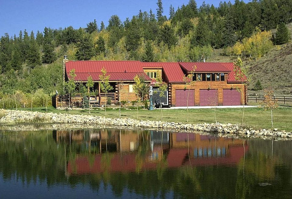 Log cabin with wrap-around porch and fenced one acre lawn, live stream and pond on 81 acres of private land. Property borders National Forest to north and community stocked fishing ponds to south. Old House Creek flows through property with private pond. Pond and well have adjudicated water rights. Has electricity (IREA), well, septic, internet and telephone.